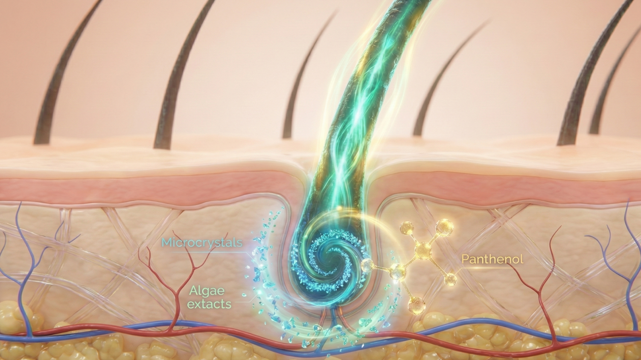 - Aporte de Açúcares e Minerais: Os extratos de algas fornecem nutrientes essenciais que energizam o metabolismo celular no couro cabeludo.