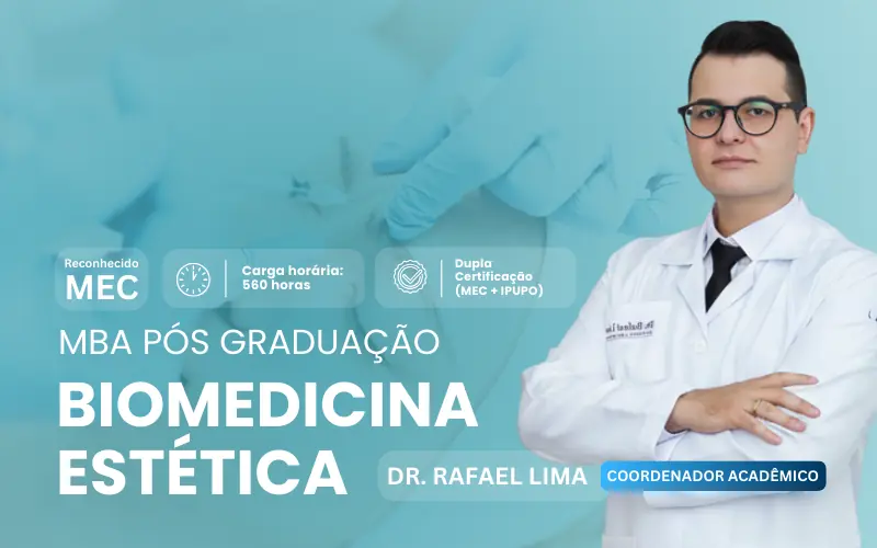 O MBA PÓS-GRADUAÇÃO EM BIOMEDICINA ESTÉTICA do IPUPO é a especialização de elite desenhada para biomédicos que exigem o topo da carreira. Com uma carga horária robusta de 560 horas, o curso oferece uma imersão científica profunda na fisiologia, farmacologia e patologia estética, habilitando o profissional para realizar os procedimentos mais complexos e rentáveis do mercado, de injetáveis avançados à harmonização íntima. É a única formação que une a dupla certificação (MEC + IPUPO) a um programa intensivo de residência clínica supervisionada, garantindo total respaldo técnico e legal perante o CFBM.