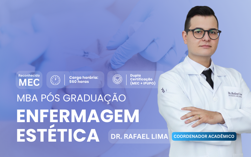 Biomédico Esteta e Referência Nacional em Estética Avançada, o Dr. Rafael Lima possui uma formação de elite: é Biomédico Especialista em Estética, Mestrando em Ciências da Saúde e graduando em Medicina, com habilitações em Análises Clínicas, Farmacologia e Ozonioterapia pelo CRBM. Com 8 anos de sólida atuação clínica e 5 anos de docência focada no raciocínio clínico científico, atua como Coordenador das Pós-graduações em Estética do IPUPO e é o idealizador das imersões Intima Concept e Master Meeting em Estética, além de ser reconhecido como Docente Credenciado do COFFITO para a habilitação de Fisioterapeutas na Estética Injetável.